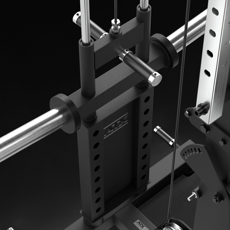 Alle relevanten Langhantelübungen können wahlweise frei am stabilen Rack oder präzise geführt an der seidenweich laufenden Multipresse ausgeführt werden. J-Hooks und Spotterarme sind bereits inklusive und sorgen dafür, dass Sie jederzeit sicher bis an Ihre Grenzen gehen können - für maximale Trainingsvielfalt und Sicherheit. Die integrierte Klimmzugvorrichtung erweitert das Workout um eine Vielzahl funktioneller Übungen. Die integrierte Latzugstation (Hantelscheibenaufnahme Ø 50 mm) ermöglicht alle relevanten Zugübungen von Oben- und Unten - ohne Umbau!