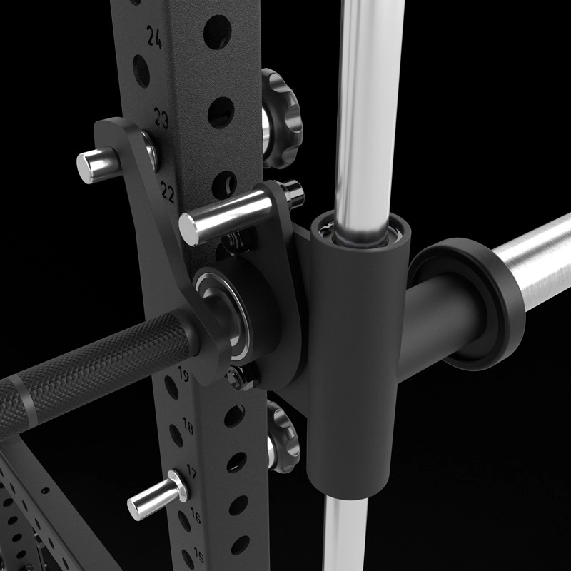 Die 30 mm starken Vollstahlwellen gewähren höchste Steifigkeit und somit geringstes Durchbiegen auch bei schweren Gewichten. Die Lagerbuchsen mit jeweils 2 hochwertigen Linearlagern gewähren einen ruhigen und verkantungsfreien Lauf. Die 6 Arretierbolzen sind individuell in der Höhe schnell und einfach verschraubbar und ermöglichen so die individuelle Einstellung der Start-/Stop- Positionen.